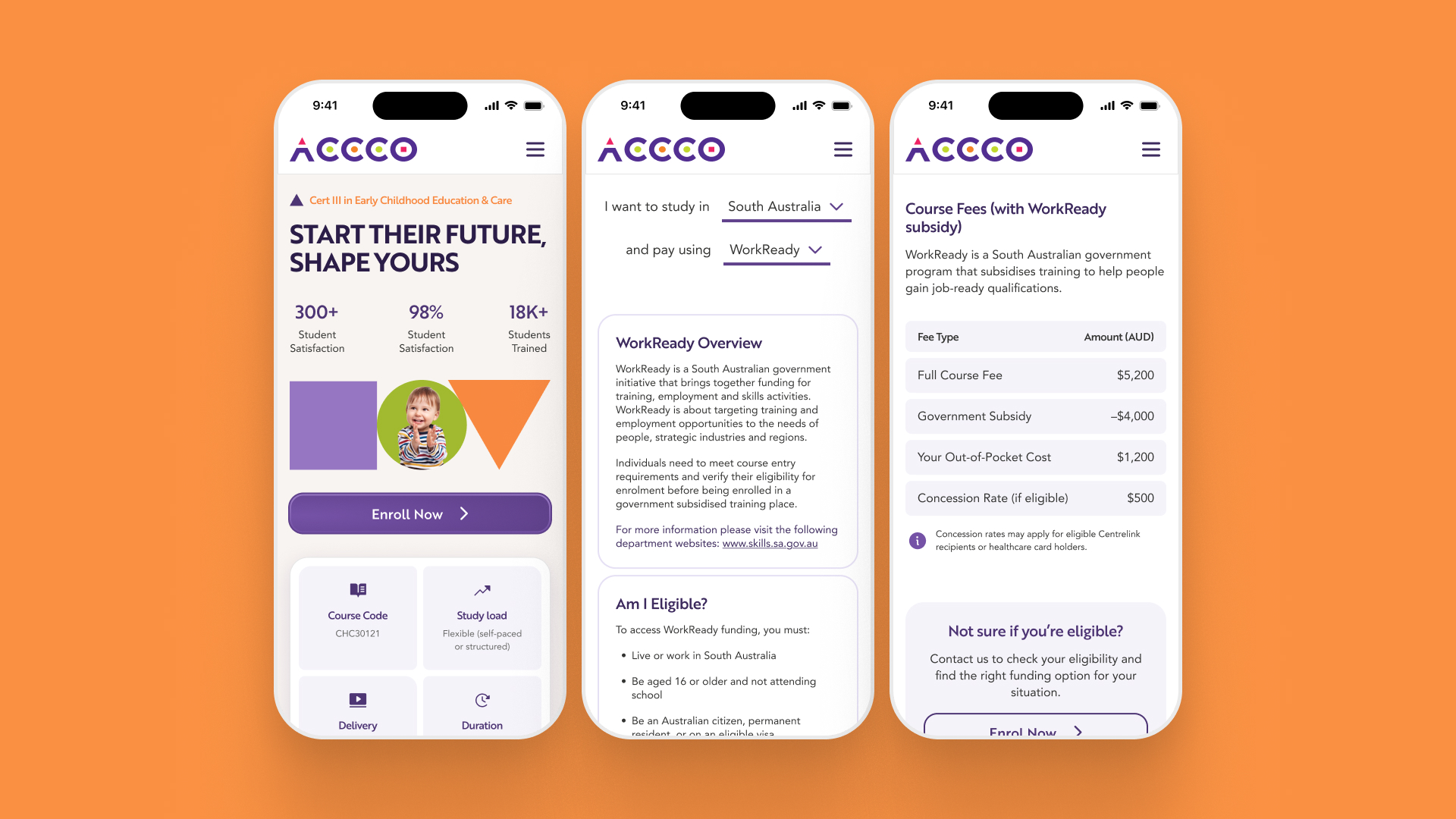 By combining creative ad assets with strategic placement across platforms, prospective students were engaged at the right time with relevant messaging. Campaigns included a mix of awareness, consideration, and conversion-focused ads, optimised continuously to ensure the best performance. This approach allowed ACCCO to understand the effectiveness of online advertising, identify high-value audiences, and scale campaigns to maximise course enrolments efficiently.